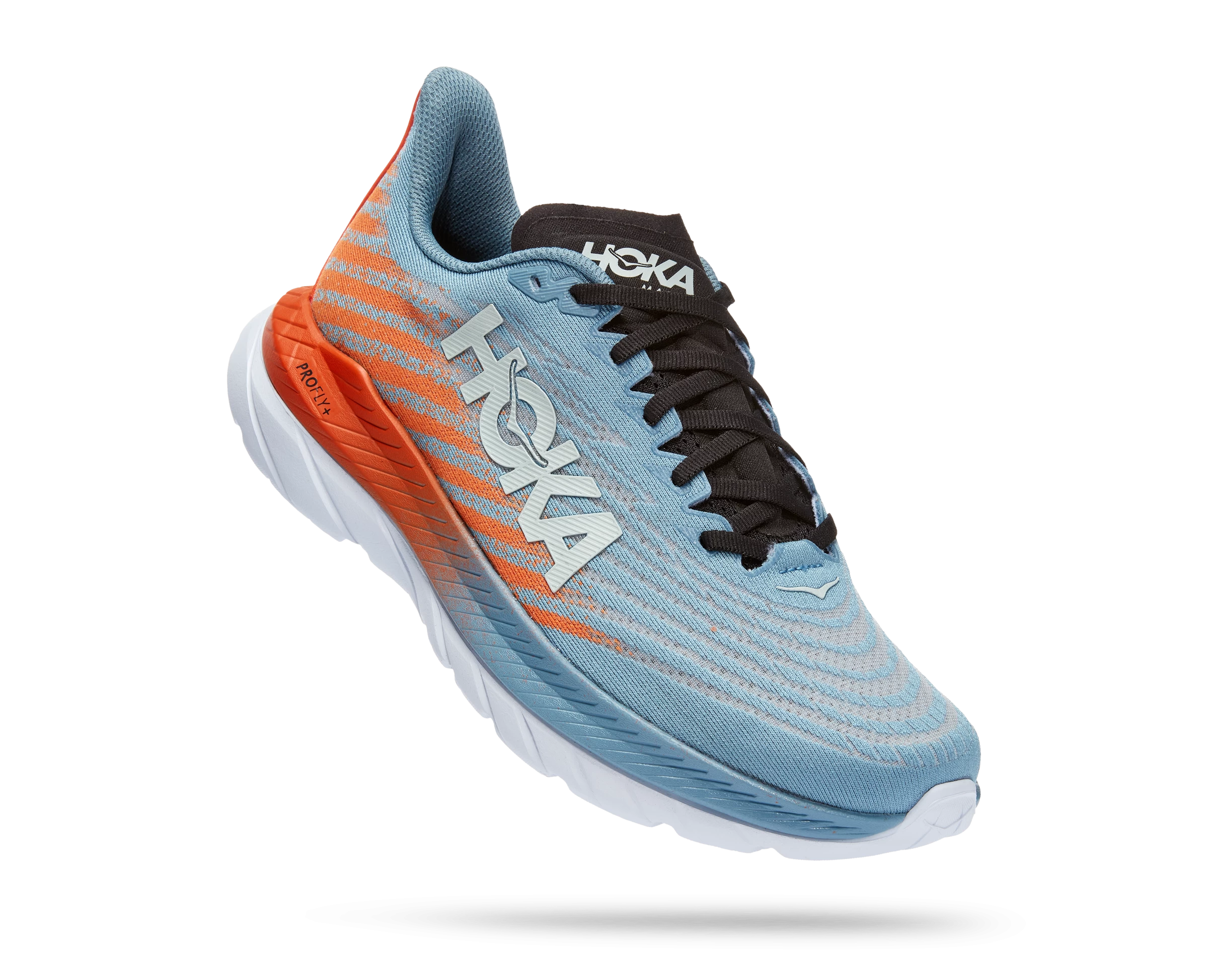 The lovechild of Mach 4 and Mach Supersonic, this lively pavement pounder is built for performance and ready to race. Sporting a stripped back creel mesh upper and lay-flat tongue, the new Mach 5 delivers a snappier ride with PROFLY’s stacked midsole setup, offering a lightweight, responsive foam directly underfoot and rubberized EVA below.